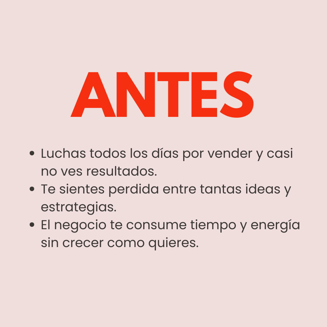 Es un sistema probado que cientos de dueñas de negocio ya aplican conmigo para vender todos los días con un plan claro y accionable.